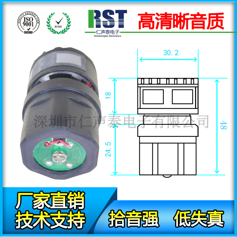 ★产品尺寸:Φ30*48.5mm ★产品描述:动圈式咪头 ★性能特点:拾音效果强,高清晰,低失真。 ★应用领域:主要用于KTV、会议系统、主播、采访、K歌麦克风、录音麦克风等。